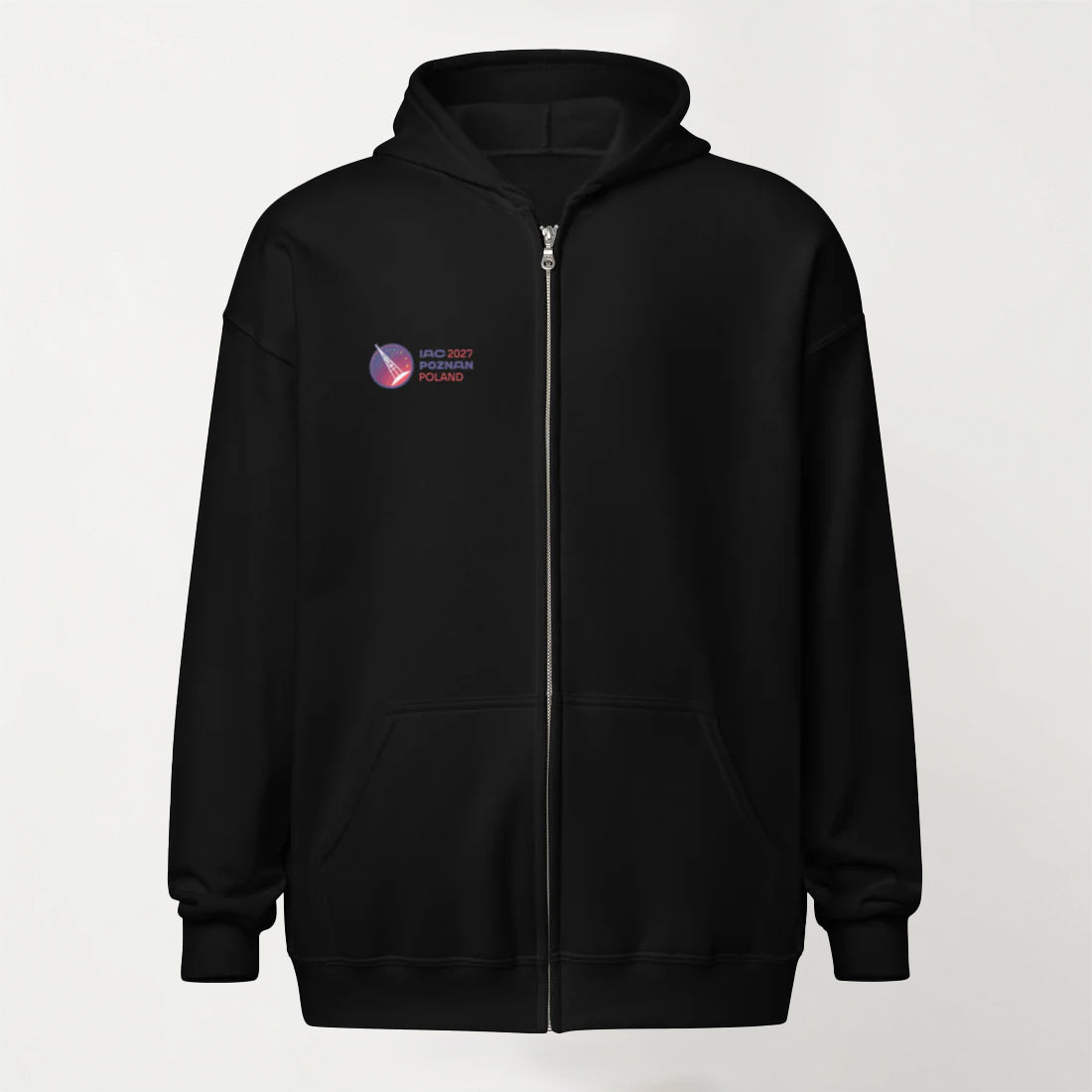 Show your support for Poland as the host city of the International Astronomical Congress with our official hoodie! Featuring the iconic Poznan convention center tower, this design is a must-have for any space enthusiast. Get yours today and be a part of history! Design by Katherine Bjelke.
